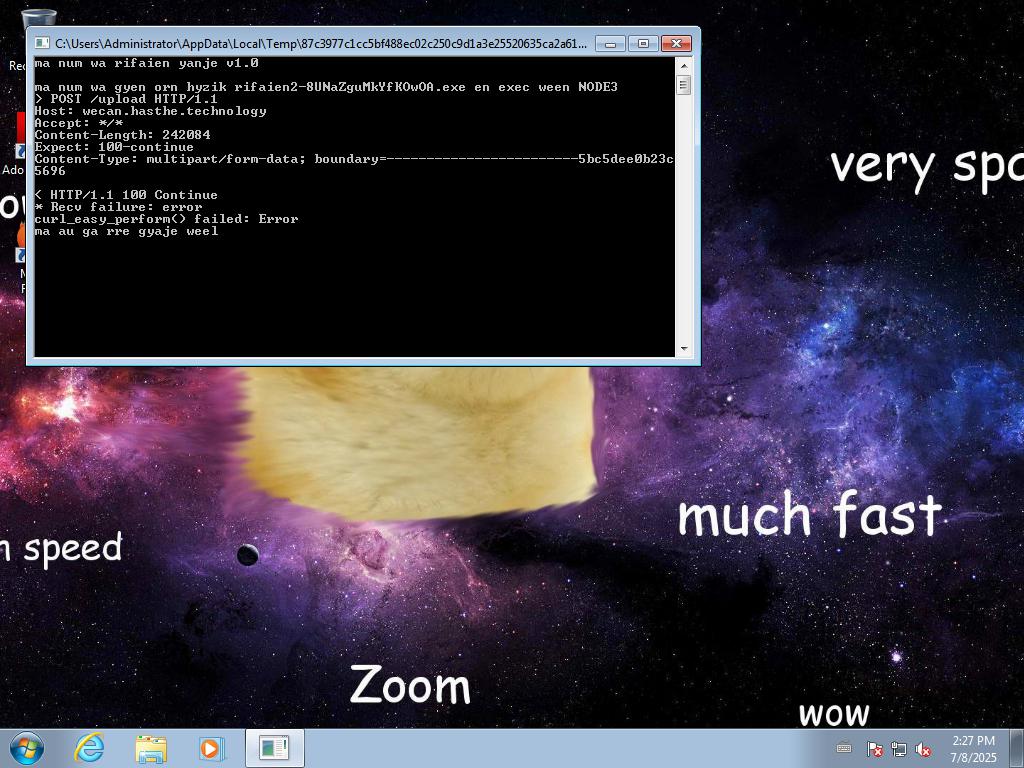 2025-07-08 14:27:41,280 [lib.api.process] INFO: Successfully executed process from path u'C:\\Users\\ADMINI~1\\AppData\\Local\\Temp\\87c3977c1cc5bf488ec02c250c9d1a3e25520635ca2a6150763704d763ee234d.exe' with arguments '' and pid 3032