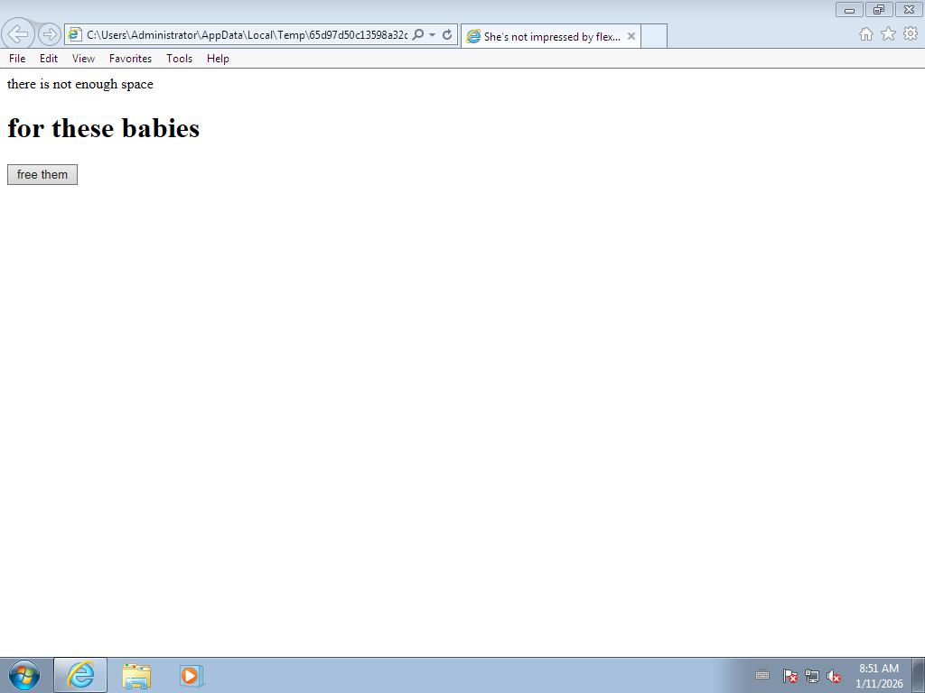 2026-01-11 08:51:20,453 [lib.api.process] INFO: Successfully executed process from path 'C:\\Program Files\\Internet Explorer\\iexplore.exe' with arguments [u'C:\\Users\\ADMINI~1\\AppData\\Local\\Temp\\65d97d50c13598a32d8caa06fc8a73c102925221b3511fe7059f0202bcd4361b.html'] and pid 2244
